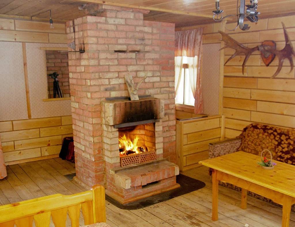 При выборе места следует учитывать дымоход конструкции, — недопустимо, чтобы он прикасался к потолочным балкам дома. Для этого нужно использовать строительный отвес.