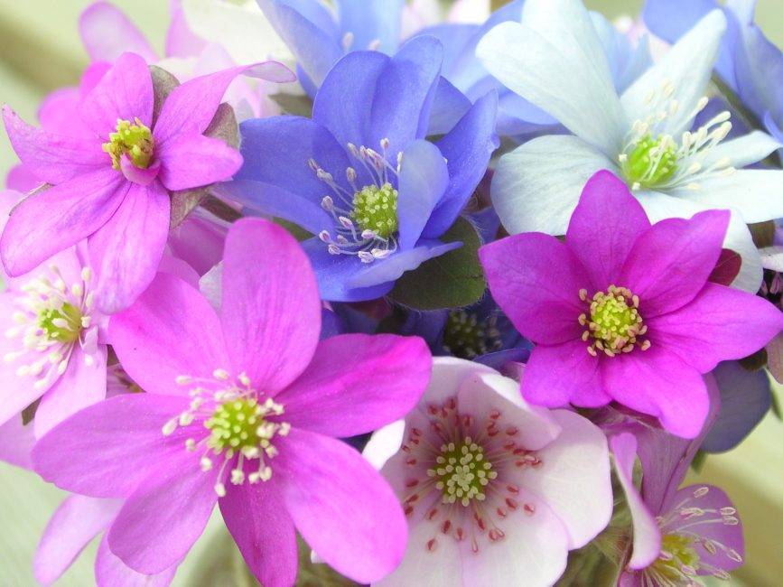 Популярны многолетники с синими цветами: печеночница, синий колокольчик, многолетняя астра, незабудка