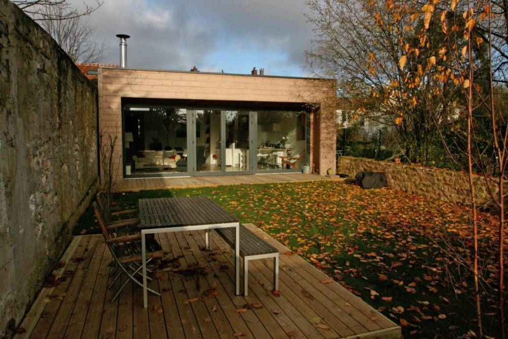 Достаточно популярны здания с большой площадью остекления. В них всегда много света и практически отсутствует грани между внутренним и наружным пространствами. Иногда пристраивается веранда, терраса или балкон.