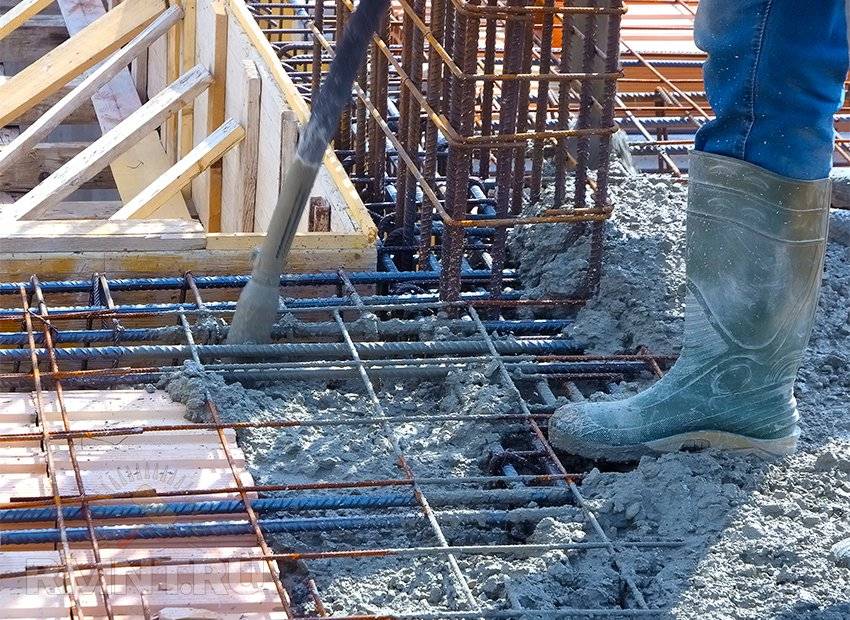 - Обязательно используйте вибраторы — глубинные или поверхностные. Без вибрирования бетон имеет 40-50% проектной прочности. Больше информации о бетонировании вы найдете в нашей статье .