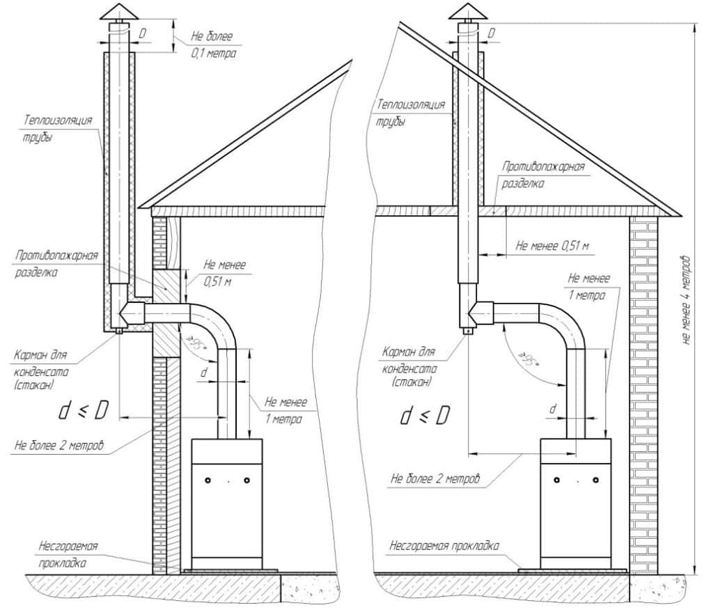 Проход дымохода через стену требует соблюдения важных правил и требований по безопасности при обустройстве дымовых каналов.