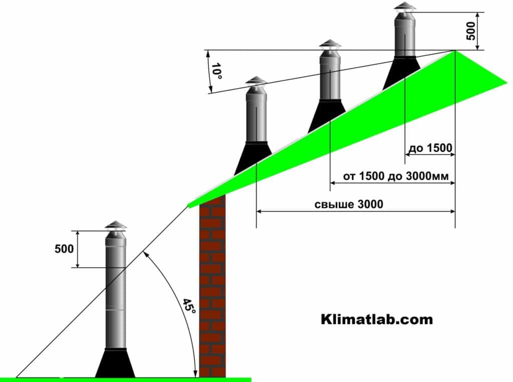 - если кровля плоская высота трубы по установленному стандарту должна составлять 0,5 м;