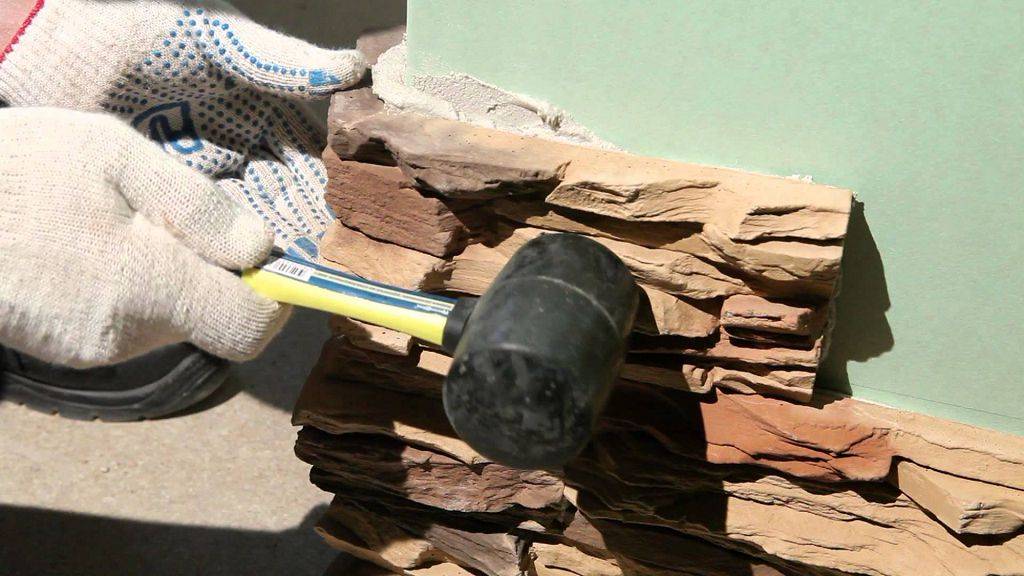 - На основе гипса. Поскольку гипс строительства издавна, технология хорошо отработана. Его плюсы: малый удельный вес, хорошая звуко- и теплоизоляция, ремонтопригодность. К гипсу добавляют воду и пигменты. Гипс не выдерживает сильных перепадов температуры, поэтому обычно применяется для внутренней облицовки, а производится камень из него в тёплое время года либо в помещении.