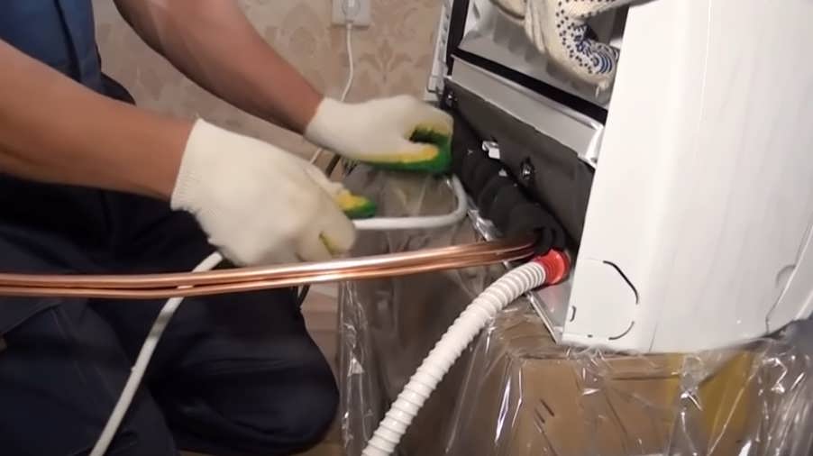 Обычно для внутреннего блока ставят другую электропроводку. Обязательно установите автомат для отключения. Далее подключаем проводку к щитку. Наружную и внутреннюю часть нужно соединить двумя медными трубками, но перед этим нужно сделать дыру в стене, чтобы трубки можно было провести к блокам.