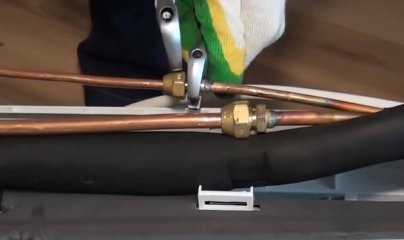 Далее осталось развальцевать трубы и закрепить концы трасс к каждому из блоков. Следует отметить, что при бурении отверстия в стене для прокладки труб минимальный диаметр составляет 5 см. В случае, если трассы будут проходить через оконную раму, то сверлится отдельное отверстие для каждой трубы. Таким образом, установка бытовых кондиционеров включает в себя несколько основных шагов и не требует значительных финансовых вложений, если уметь пользоваться инструментом.