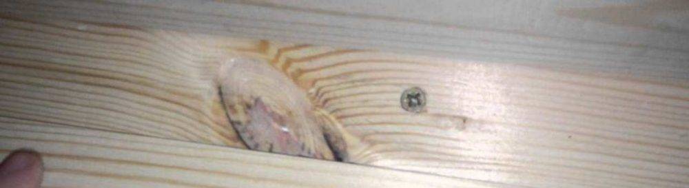 Можно еще вырезать небольшие чопики из древесины и закрыть отверстия с их помощью. Будет немного лучше, но не идеально. Все равно они выделяются — направление волокон другое.