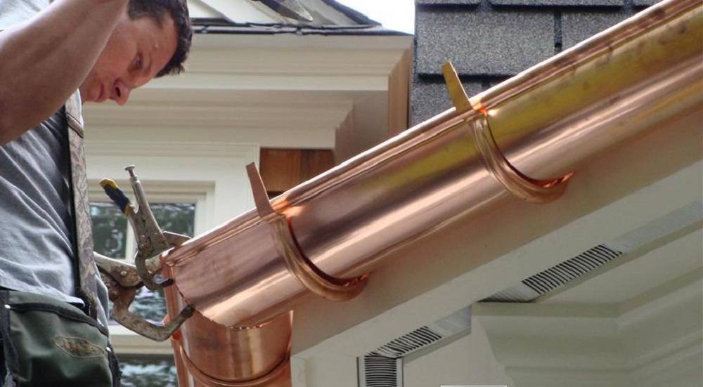 Кроме того, медные детали не подвержены коррозии. Все это делает медь почти идеальным материалом для водостока. Однако такие детали стоят достаточно дорого, поэтому используются они не часто. Чаще всего их монтируют на медных или черепичных крышах.