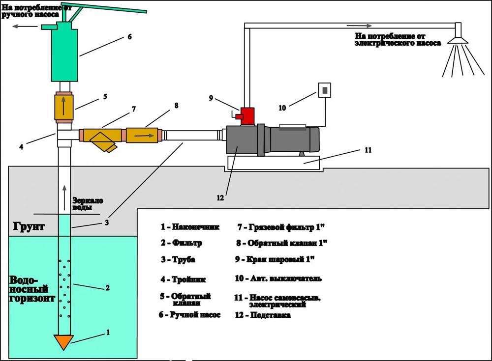 - Всасывающий трубопровод, который опускается в скважину или колодец. Он идет до насосной станции.