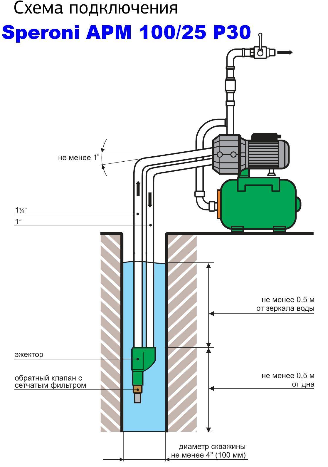 Прежде чем запускать систему по забору воды из источника под землей, необходимо удостовериться, что оборудование подключено правильно. Если используется эжектор, то проверяется наличие линии рециркуляции и ее подсоединение к накопительному баку. Когда применяют однотрубное подключение к помпе, нужно заранее подготовить к работе гидроаккумулятор.
