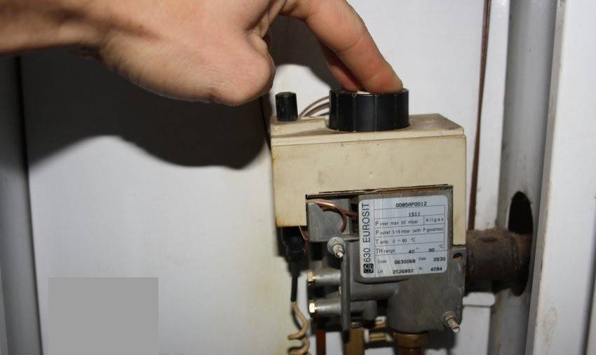 Давление налаживают на автоблоке. К примеру, возьмем Eurosit 630. Агрегат поддерживает температуру воды в отопительном контуре и останавливает подачу газа в опасной ситуации. На Eurosit 630 есть ручка, которая крутится и имеет 7 режимов пламени, — наведите ее на положение «1», снимите крышку и прикрутите винт слева под рукояткой. Крутите по часовой — подача газа будет меньше и плавнее, автоматика заработает лучше.