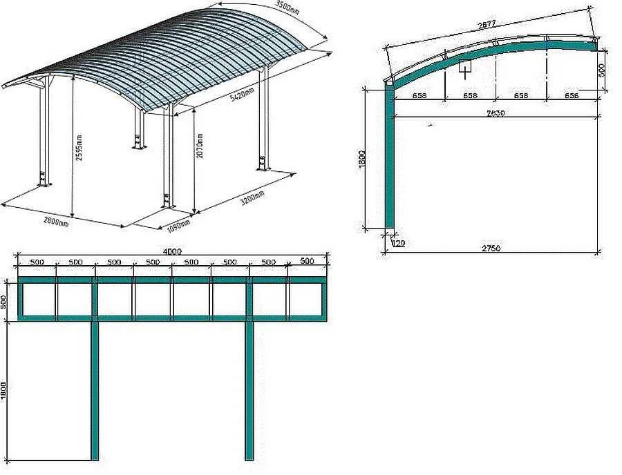 Чертеж навеса со сводчатой крышей