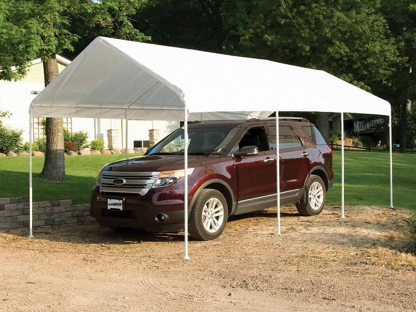 1. Следует наперед определиться с размерами навеса. Учитывайте габариты своего автомобиля, а также то, что солнечные лучи и осадки не падают строго перпендикулярно поверхности земли. Делайте напуски со всех сторон, иначе низ машины будет попадать и под дождь, и под солнце. Напуски должны быть тем больше, чем больше высота навеса.