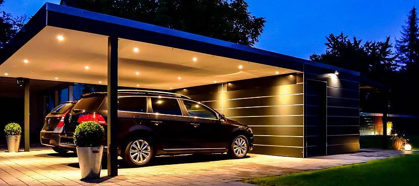 Так как навес на 2 автомобиля представляет собой массивную конструкцию, необходимо расположить его таким образом, чтобы он не перекрывал солнечный свет.