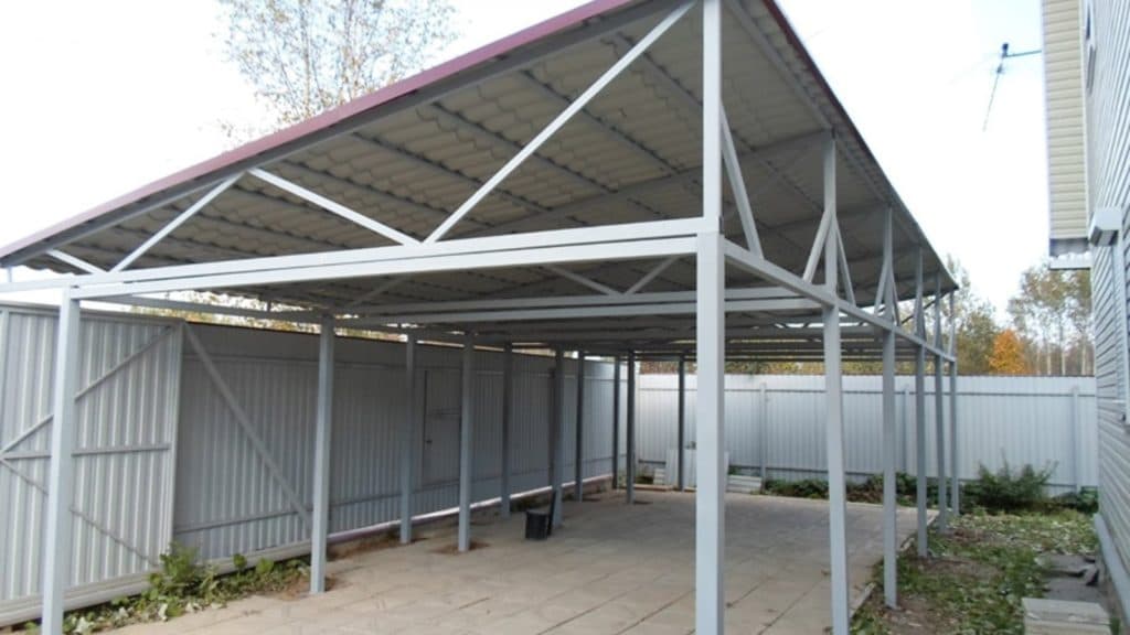 Каждая конструкция имеет свои особенности. Например, навес для одного или двух автомобилей имеет минимальные размеры, необходимые для полноценной защиты. Строить укрытие для временного хранения стройматериалов без укладки на грунт покрытия или установки поддонной не имеет смысла.