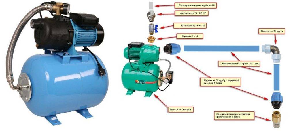 Объем гидроаккумулятора может составлять 22, 25 либо 60 л. Это самые доступные станции для частного использования, стоимость которых начинается с 7-ми тыс. рублей.