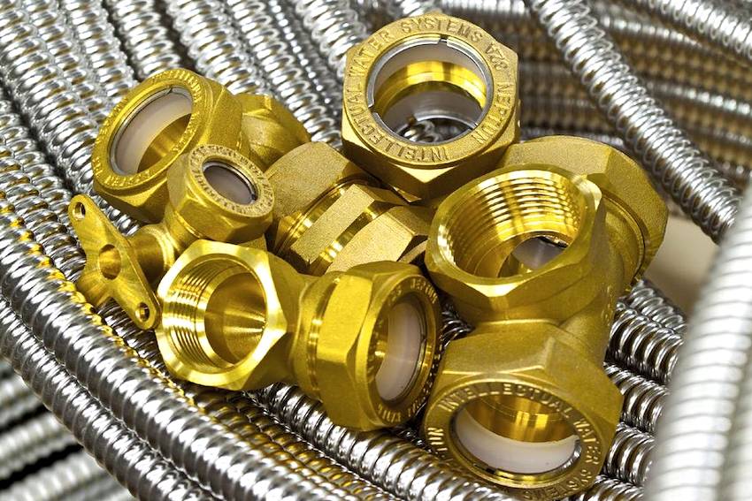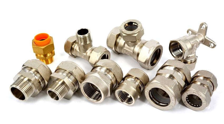 Для соединения отдельных частей инженерных коммуникаций между собой чаще всего используют латунные фитинги, которые, в зависимости от предназначения, могут иметь разный диаметр, форму сечения и конфигурацию. Состоят такие изделия из тела, накидной гайки, пластикового или стального кольца-стопора и силиконовой прокладки, герметично обжимающей гибкую трубу.