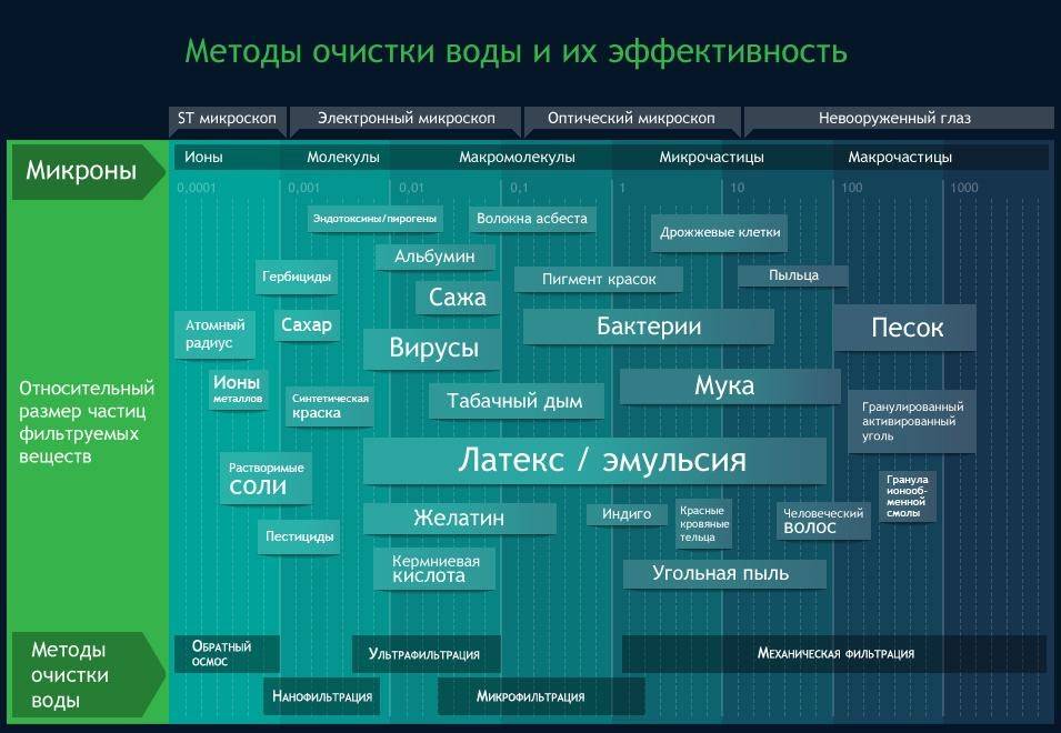 ивания воды (хлорирование, озонирование, обеззараживание ультрафиолетом и т.п.) при прохождении через ультрафильтрационную мембрану микроорганизмы физически отфильтровываются, так как размер пор мембраны немного меньше размеров бактерий и вирусов.