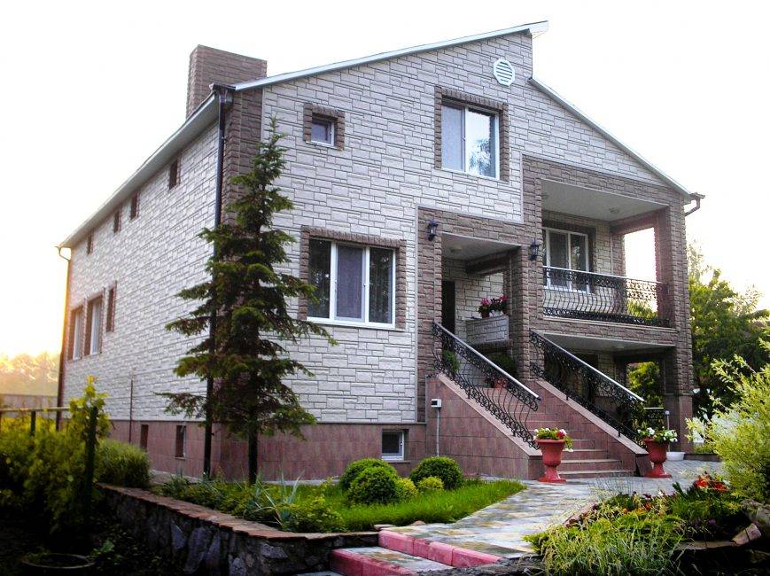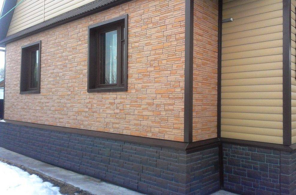 Пример использования панелей под камень для защиты фасада, цоколя: