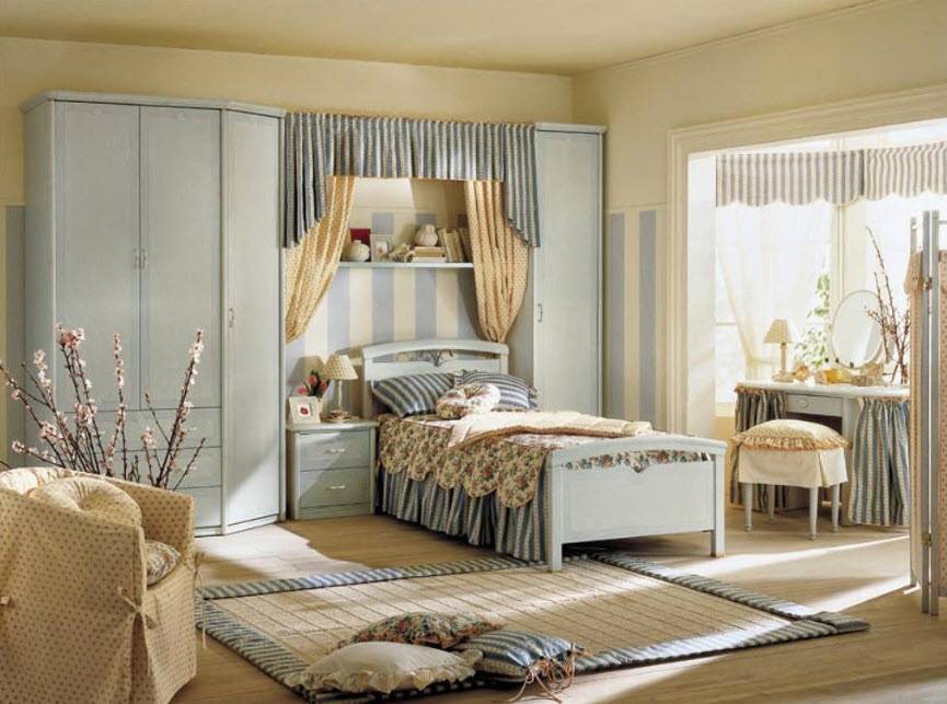 Провинциальные мотивы годятся также для оформления комнаты, где живут дети постарше. Девочкам наверняка понравятся нежно-розовые оттенки, цветы, представители животного мира. Все это поможет девочке почувствовать себя маленькой принцессой. Мальчикам подойдут рисунки с географическими картами, автомобилями, кораблями. Самое главное, чтобы тон был светлым и спокойным. Обои двух видов прекрасно сочетаются.