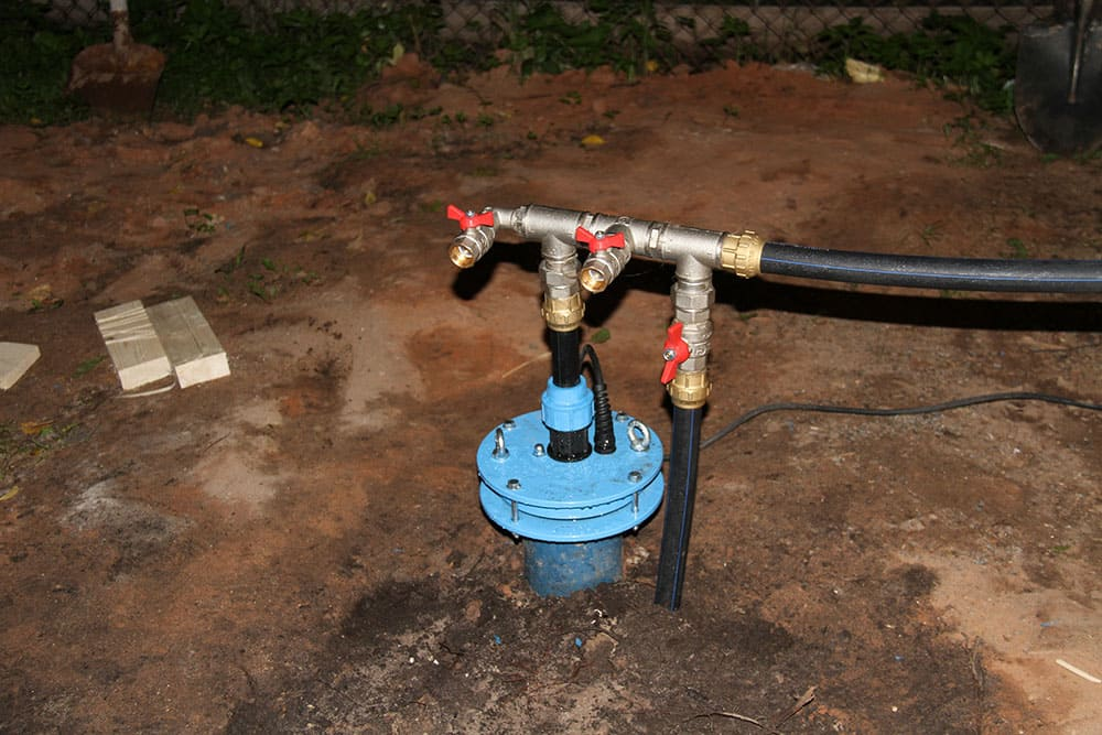 Прежде чем установить эксплуатационный насос, скважину нужно прокачать, выкачивая из неё воду дренажным насосом, пока она не станет прозрачной, без осадка.