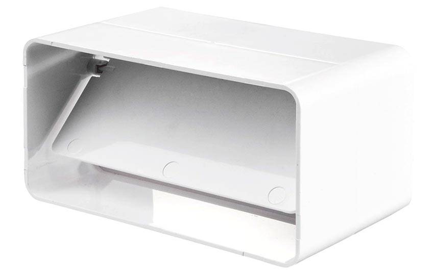 Более функциональным и бюджетным вариантом считается клапан, вмонтированный в стену. Устройство имеет вид пластиковой гильзы с фильтром и шумоизоляцией. Его наружная сторона закрыта козырьком и сеточкой, внутренняя – декоративной решёткой с заслонкой.