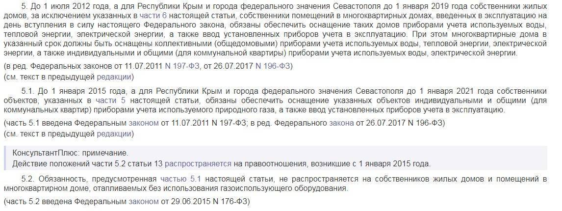 Обязанность устанавливать подобные счетчики закреплена в № 261-ФЗ от 23 ноября 2009 года.