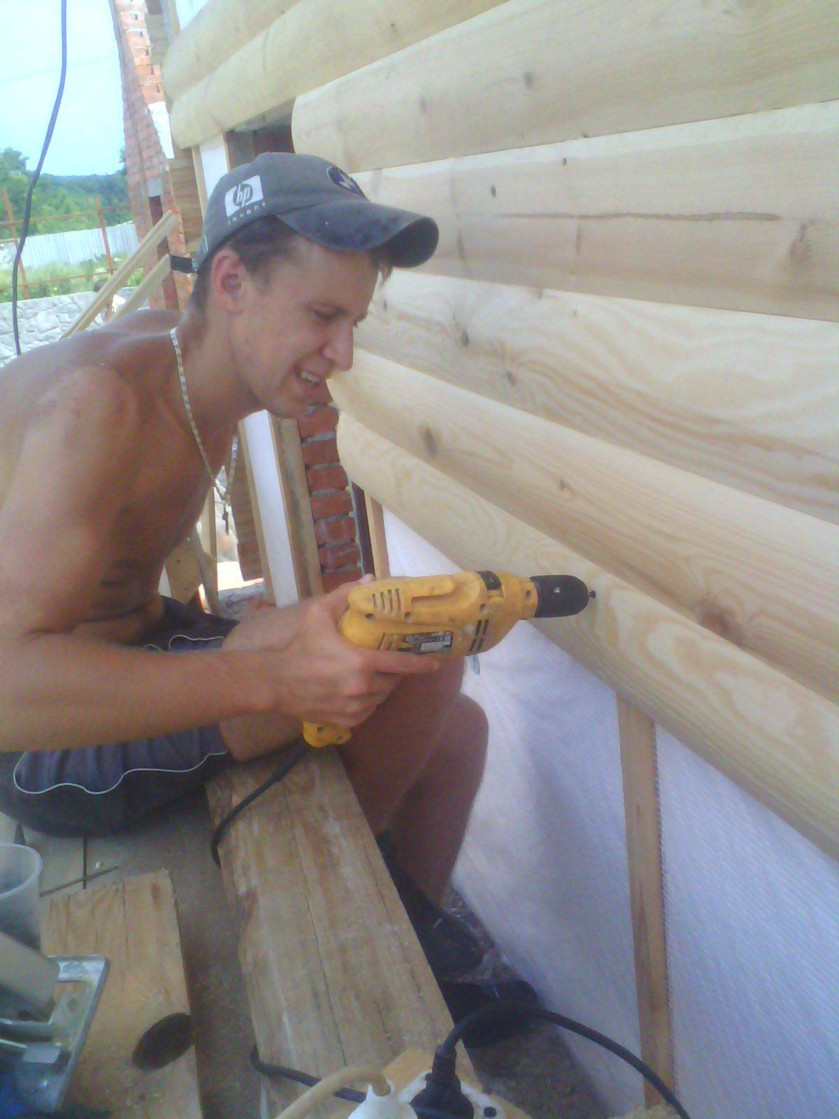 - Обшивка Блок Хаус из дерева предполагает сверление отверстий для крепежа в досках облицовочного материала;