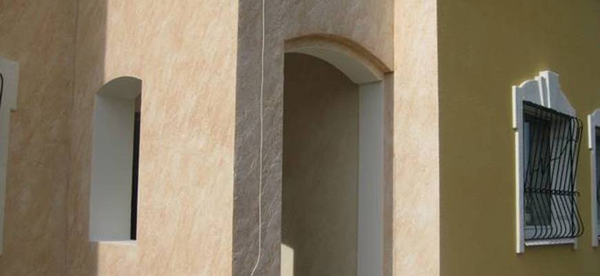 Этот вид отделки подходит для зданий со сложной архитектурой. Декоративную штукатурку используют для стен из газобетона, ракушника, пенобетона, кирпича, бетона. Но основания предварительно выравнивают более дешевыми растворами.