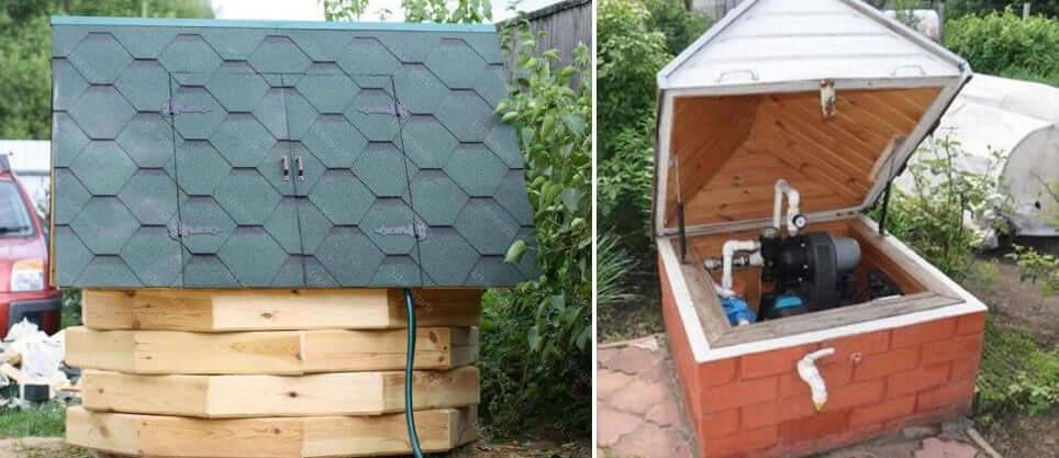 Если размер участка большой, то можно над скважиной обустроить отдельную постройку. Это может быть модульное строение, утеплённый контейнер или красиво оформленный домик, который станет элементом ландшафтного дизайна.
