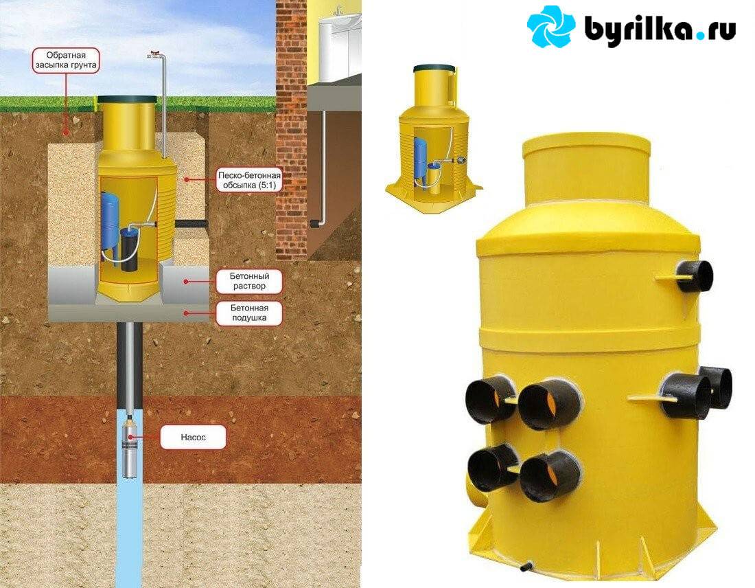 Приямки делают из бетона, заливая через опалубку. Вариант из кирпичной кладки менее герметичен, применяют для песчаной почвы.