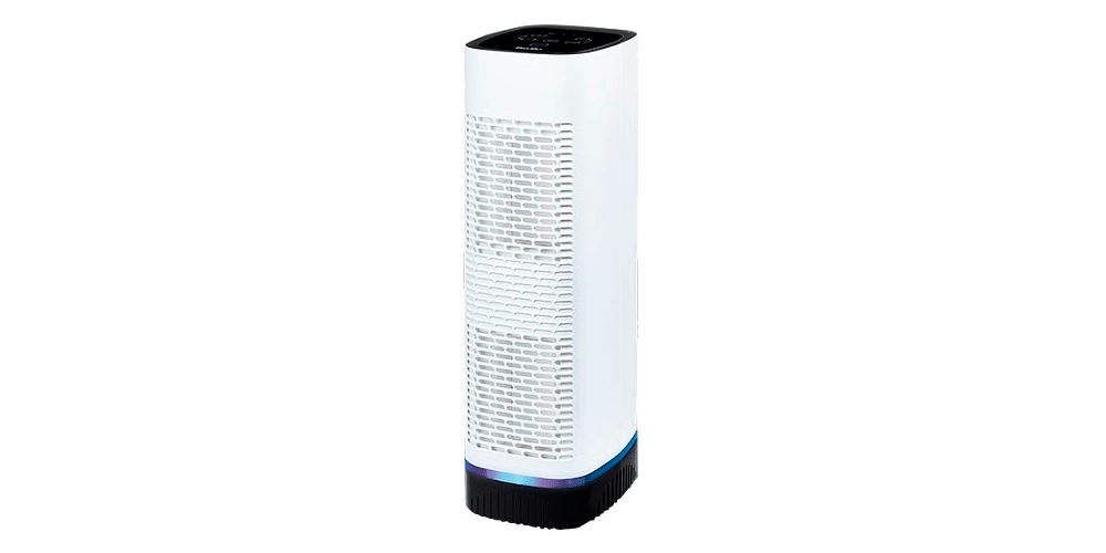На шестом месте ТОПа стоит Ballu AP-110. Воздухоочиститель колоновидной формы, выполненный в белом цвете. Сенсорная панель управления с дисплеем вынесена на верхнюю панель. Очистка воздуха происходит с помощью двух фильтров — предварительного и НЕРА. Также прибор выполняет функцию обеззараживания с помощью УФ-лампы и фотокаталитического фильтра. Причём работу лампы можно отключать. Также у Ballu есть кнопка включения ионизации для насыщения воздуха полезными ионами.