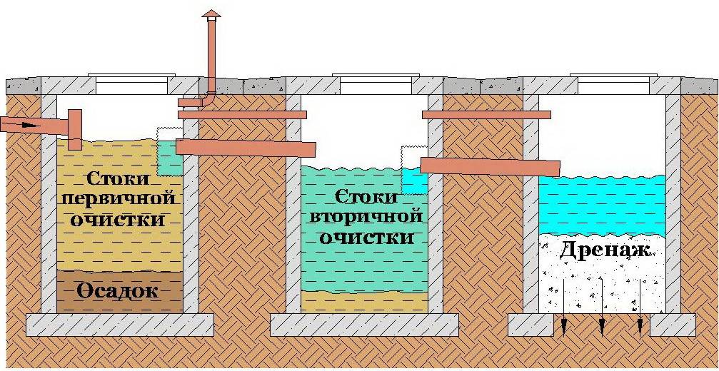 Схема устройства трехкамерного септика с аэрацией