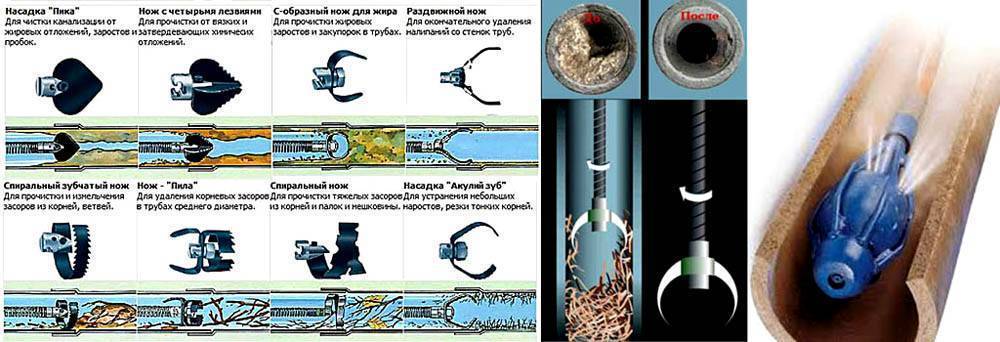 При приобретении троса для прочистки канализационных труб, обращайте внимание на присутствие насадок. Эти приспособления помогут бороться с разными типами засоров. Можете рассмотреть такие варианты: