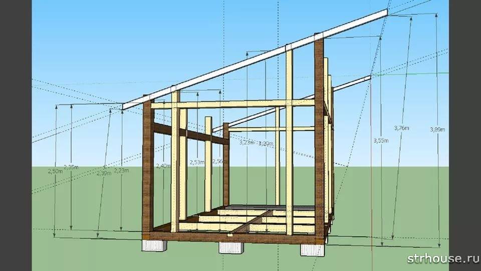 Устройство стропильной системы односкатной крыши