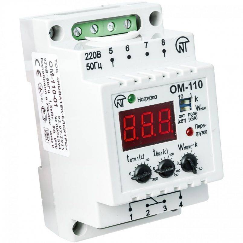 Реле ограничения мощности со встроенным реле напряжения ОМ-110-01 предназначено для постоянного контроля активной или полной мощности однофазной нагрузки.