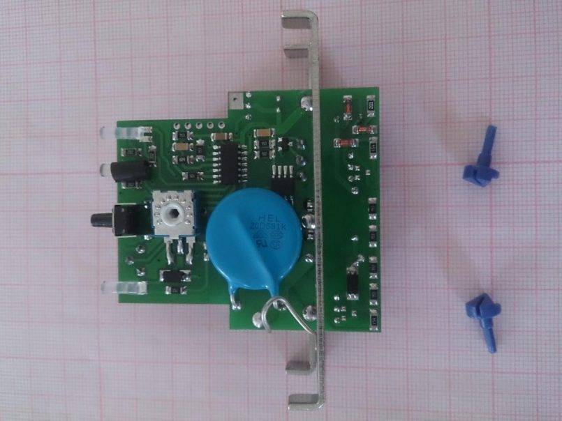 - Подключить питание, после чего должен загореться светодиод, а через заданное время индикатор желтого цвета и включиться нагрузка.