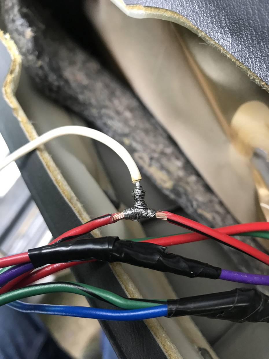 1Зачищал в нужном месте изоляцию и делал в проводниках окошко