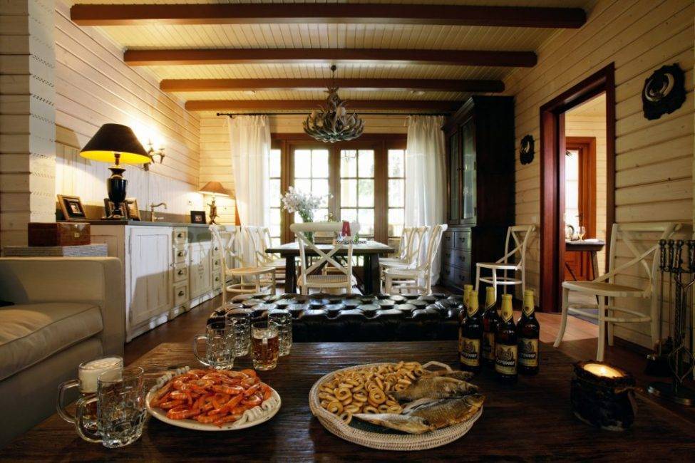 Дизайн и нюансы комнаты для отдыха в бане зависят от предпочтений владельцев. Это своеобразное помещение, имеющее многофункциональное назначение. Нынешние бани часто имеют входной вестибюль, мини-кухню, туалет, бассейн.