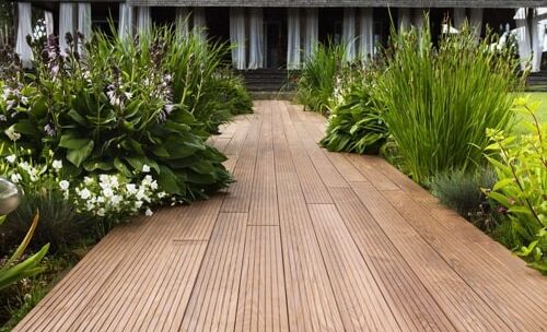 - Протекающий — между каждой доской есть по 2–3 см свободного пространства, через которое вода стекает в землю.