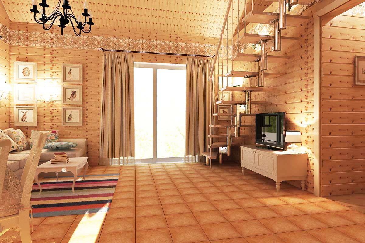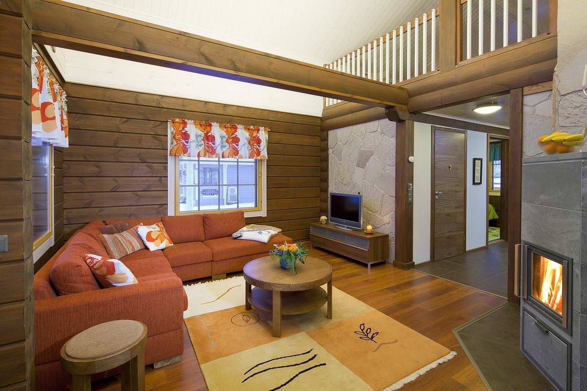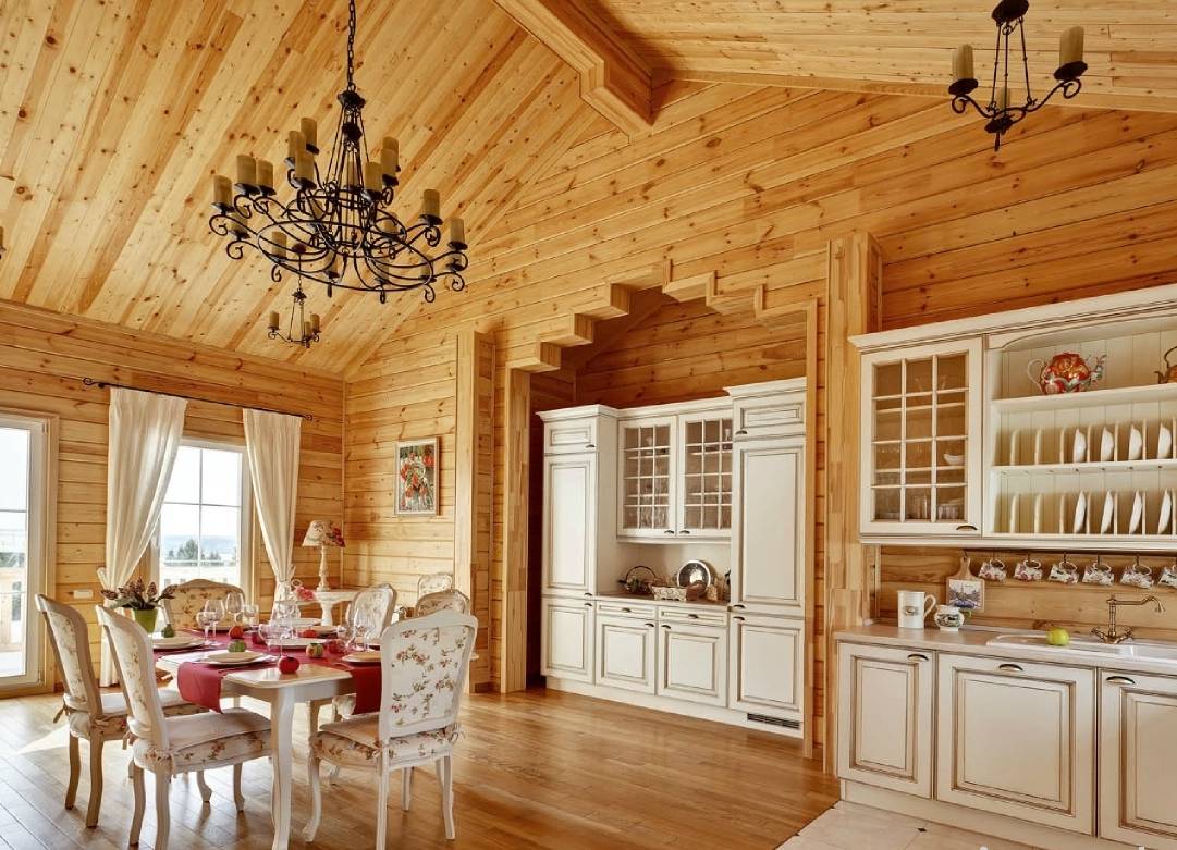 Деревянные дома из бревен часто отделывают вагонкой Блок-Хаус. Полукруглая поверхность имитирует бревенчатую кладку стен и хорошо вписывается в общий дизайн интерьера.
