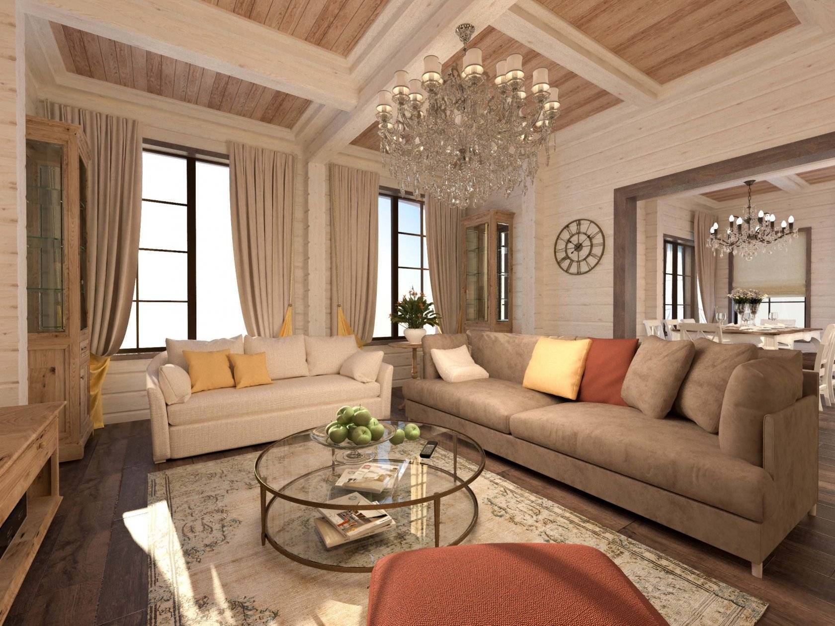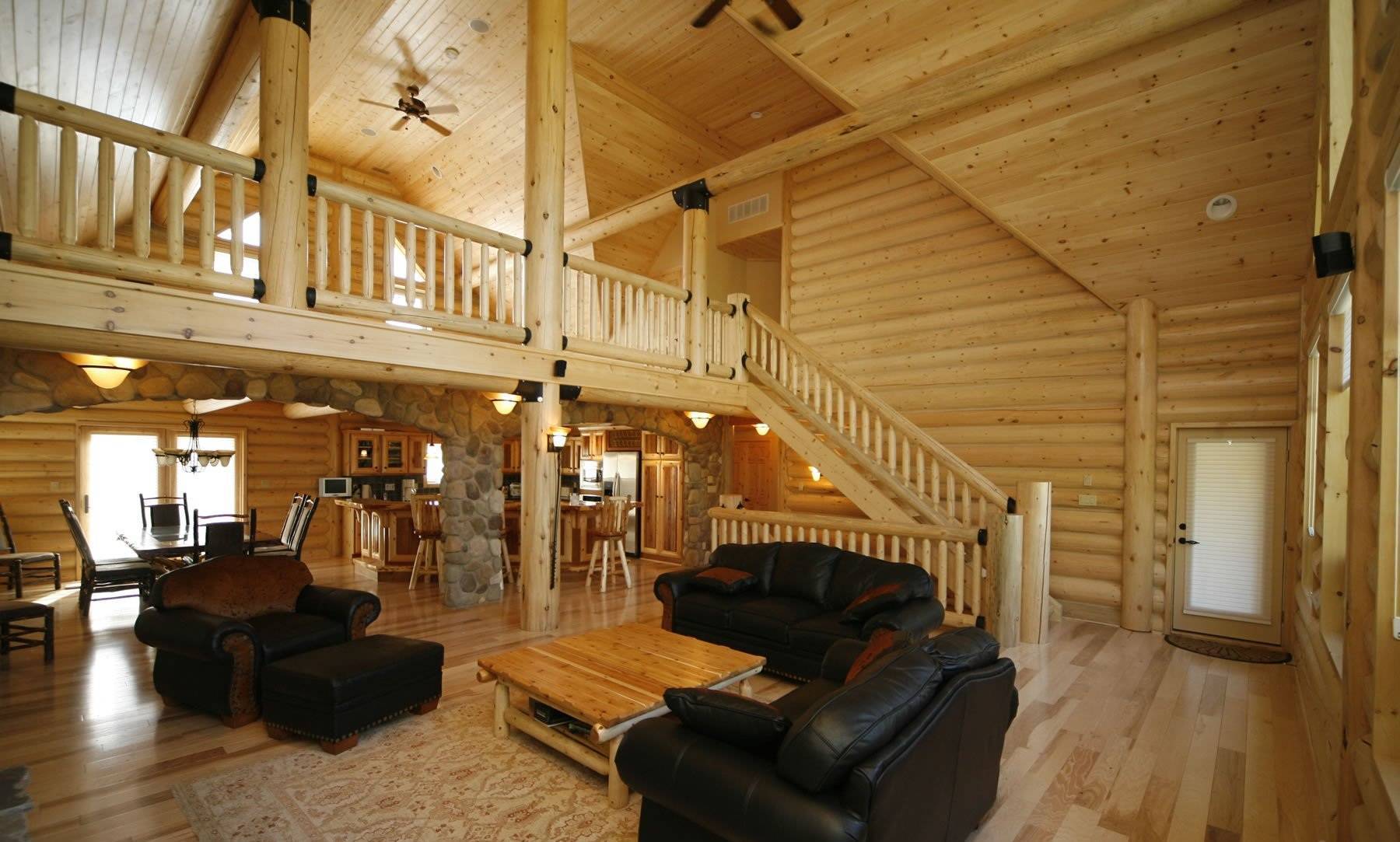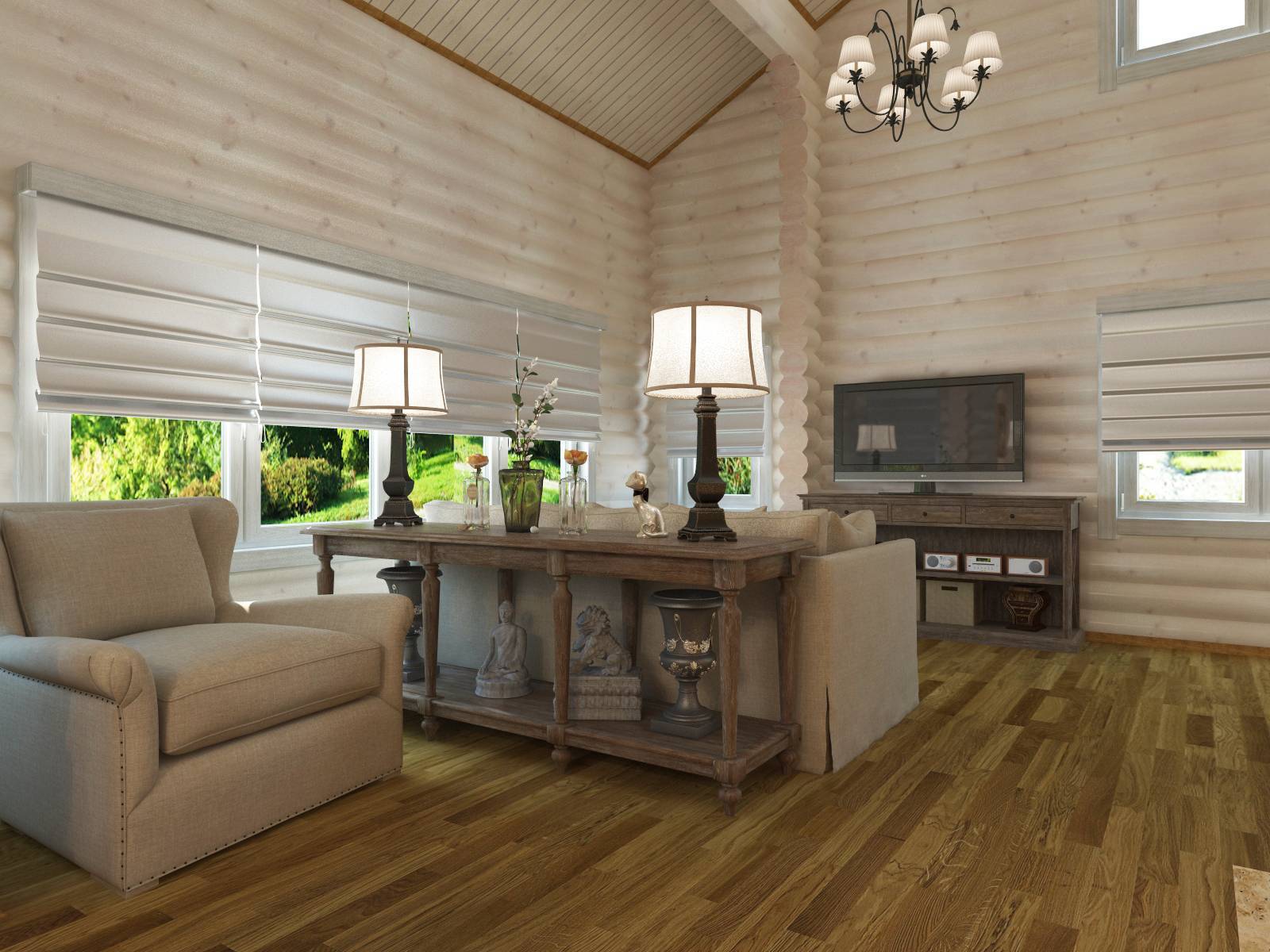 Дом из оцилиндрованного бревна смотрится самобытно. В некоторых случаях покрывать внутренние поверхности деревянных стен вовсе не обязательно. Однако далеко не всегда бревна смотрятся эстетично – хочется закрыть их более интересным видом обшивки