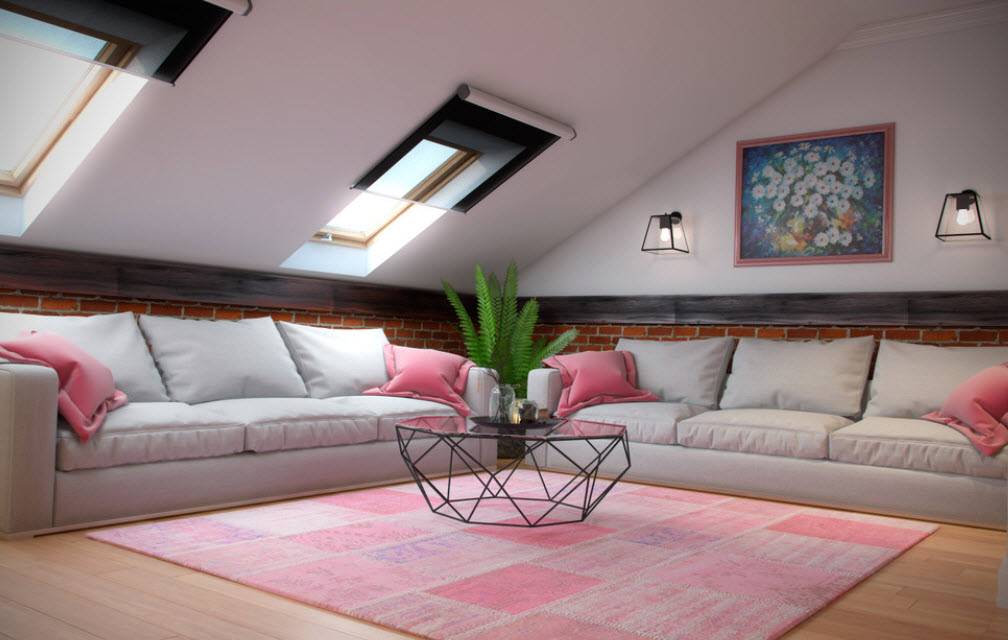 Чем больше площадь мансарды, тем красивее получится гостиная