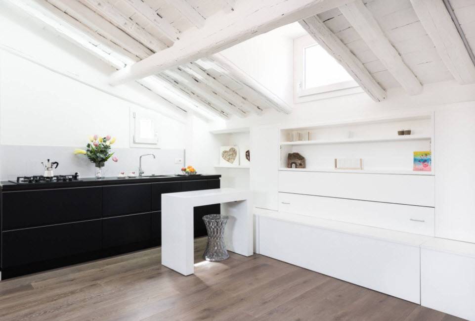 Гостиная на мансарде не так популярна, как другие типы помещений. Дело в том, что если гостиной пользуются только домочадцы, то это более менее удобно, но если часто приходят гости, то приглашать их в комнату, проводя через весь дом не всегда удобно. Кроме того, напитки и закуски не очень комфортно носить из кухни, тем более если мансарда находится на третьем этаже. Как вариант можно, конечно, обустроить гостиную совмещённую с кухней или установить мини-бар.