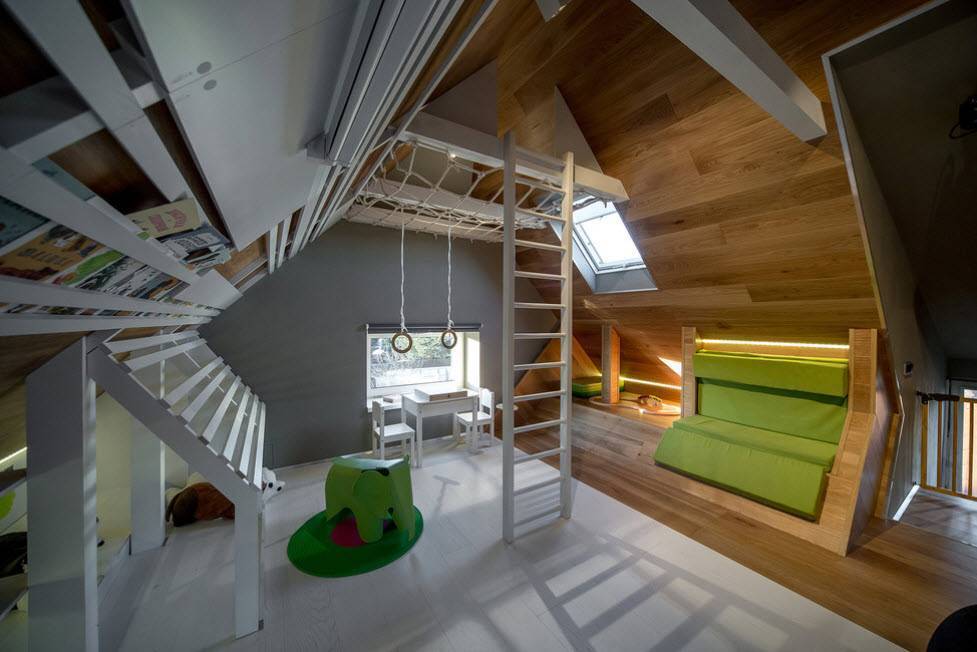 Гостиная, спальня, кабинет, детская — вот перечень помещений, которые делают на мансардном этаже