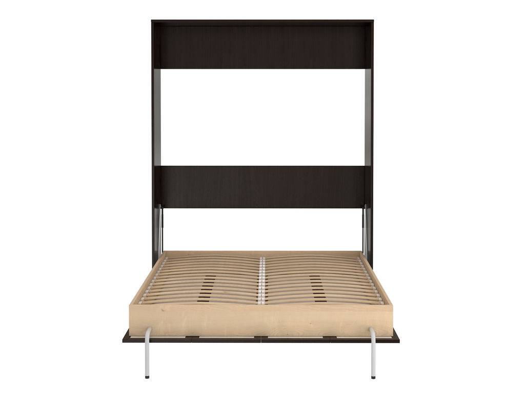 Само по себе сооружение отличается простотой. В его состав входят лишь два элемента: шкаф, который при собранном положении спального места ничем не отличается по внешнему виду от обычных платяных моделей, и непосредственно спальное место. Последнее состоит из каркаса и опорной ламельной системы для матраса. Также составной частью (одной из самых важных) является подъемный механизм, при помощи которого кровать с легкостью откидывается из шкафа, а после использования убирается обратно. Матрасы обычно заказываются отдельно. Они не должны быть толще 25 см, чтобы предмет интерьера мог свободно убираться в предназначенную для него нишу. Ширина шкафа при этом соответствует размеру спального места (если не устанавливаются дополнительные отсеки для организации систем хранения).В некоторых моделях предусмотрены ножки для кровати.