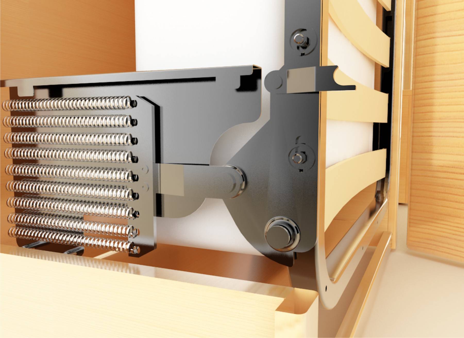 - Тщательно следует выбирать механизм трансформации, особенно если такая кровать будет в детской комнате. Как уже было сказано ранее, бывают газовые и пружинные механизмы. Мастера советую отдавать предпочтение газлифту, так как пружины со временем теряют свою эластичность и ломаются.
