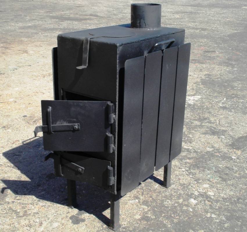 Самый простой из них – буржуйка, которую топят обычно дровами. Это может быть печь любой конфигурации, изготовленная из любой готовой ёмкости. К примеру, из 200-литровой бочки, которую разрезают пополам поперёк. Из половинки и делается печь. Хотя можно бочку расположить горизонтально, не разрезая её. Главное – сделать патрубок для дымохода, топку, куда вставляется перегородка из решётки, сваренной из арматуры, и дверцу для закрытия топочной камеры. Как показывает практика, за три−четыре часа изготовить такой нагревательный прибор не проблема.