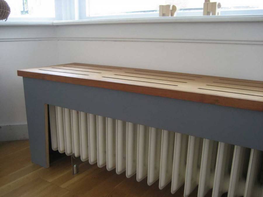 Более элитным вариантом является специальная встраиваемая мебель которую выполняют на заказ по индивидуальным замерам и эскизам. Легче всего спрятать трубы в стол, шкаф, комод, сиденье и т.д. Но важным условием является свободная циркуляция воздуха от места нагрева, что позволит как закрыть батарею, так и отапливать помещение без помех.