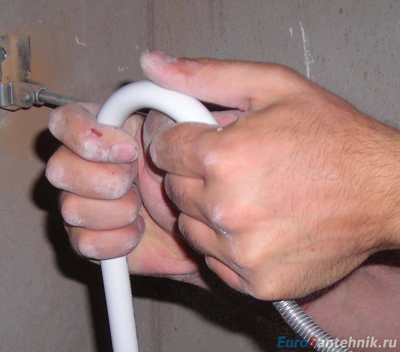 Если говорить о достоинствах металлопластиковых труб, то можно выделить те же самые плюсы, что и у полипропиленовых собратьев. Но отдельно стоит выделить то, что они способны держать более высокую температуру. А также, и это является их главной отличительной чертой, металлопластик отлично гнется. При этом вы можете не боятся за его повреждение. И этот факт делает данный вид труб идеальным вариантом для системы «теплый пол».