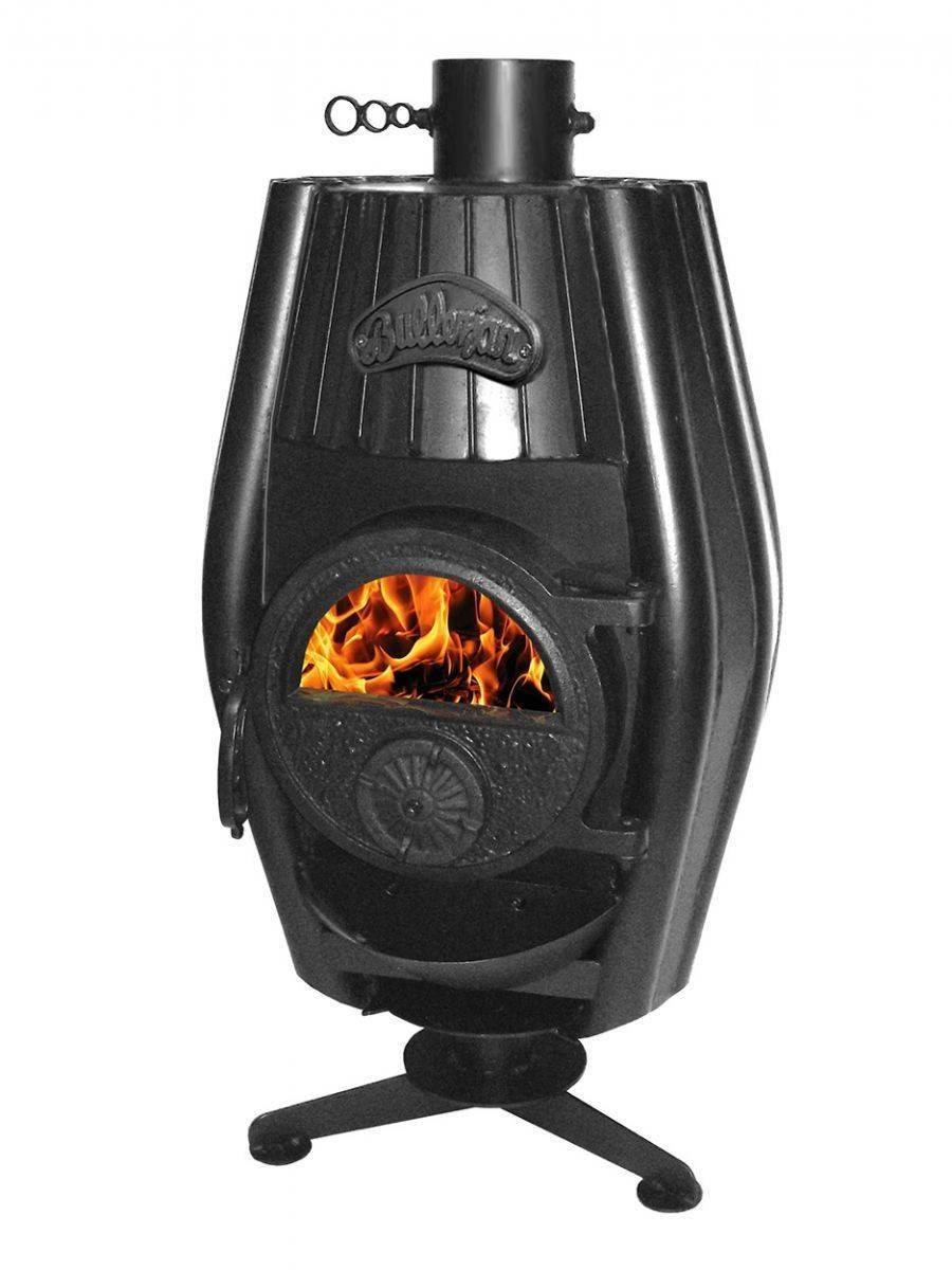 Чугунная или стальная печь обязательно должна быть защищена оцинкованным листом в целях пожаробезопасности. Булерьян отапливает не только частные строения, но подойдет для теплицы – там ее необходимо монтировать в центре.